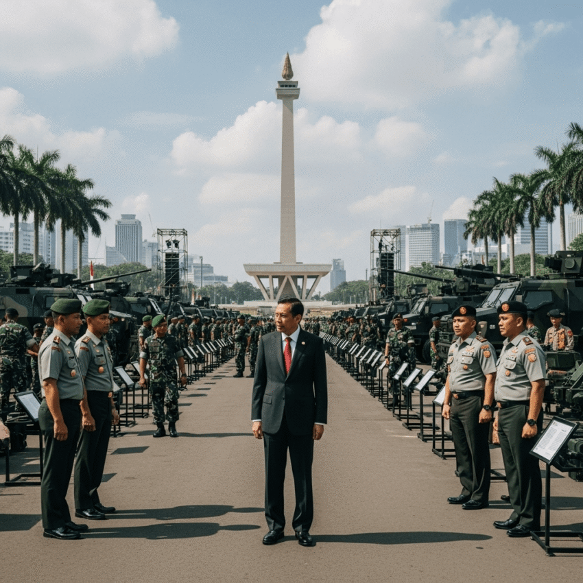 Presiden Prabowo Subianto melakukan peninjauan langsung terhadap persiapan peringatan Hari Ulang Tahun (HUT) ke-80 Tentara Nasional Indonesia (TNI) yang akan digelar di kawasan Monumen Nasional (Monas), Jakarta Pusat, pada Jumat, 3 Oktober 2025. Peninjauan ini dilakukan guna memastikan kelancaran dan kesuksesan acara yang akan menjadi tonggak sejarah bagi institusi TNI tersebut.